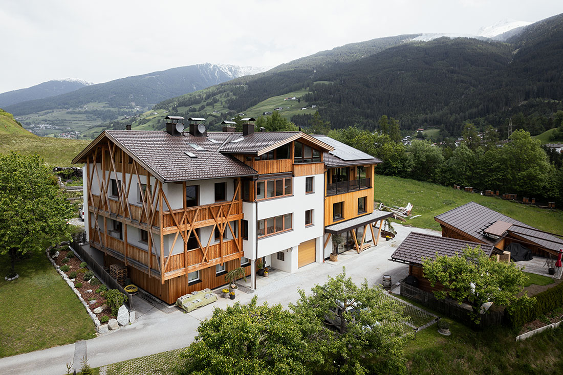 Wenn ein Betrieb an die nächste Generation weitergegeben wird, ist diese Situation oft ein fruchtbarer Boden dafür, mit frischen Ideen und viel Willenskraft etwas Neues entstehen zu lassen. Die sich laufend verändernden Lebensbedingungen setzen es voraus, erfinderisch, mutig und innovativ zu sein. So geschehen auch bei dieser Hofstelle im Wipptal. Die ehemalige Tenne dient nun als Wohnraum für die junge Betreiberfamilie.